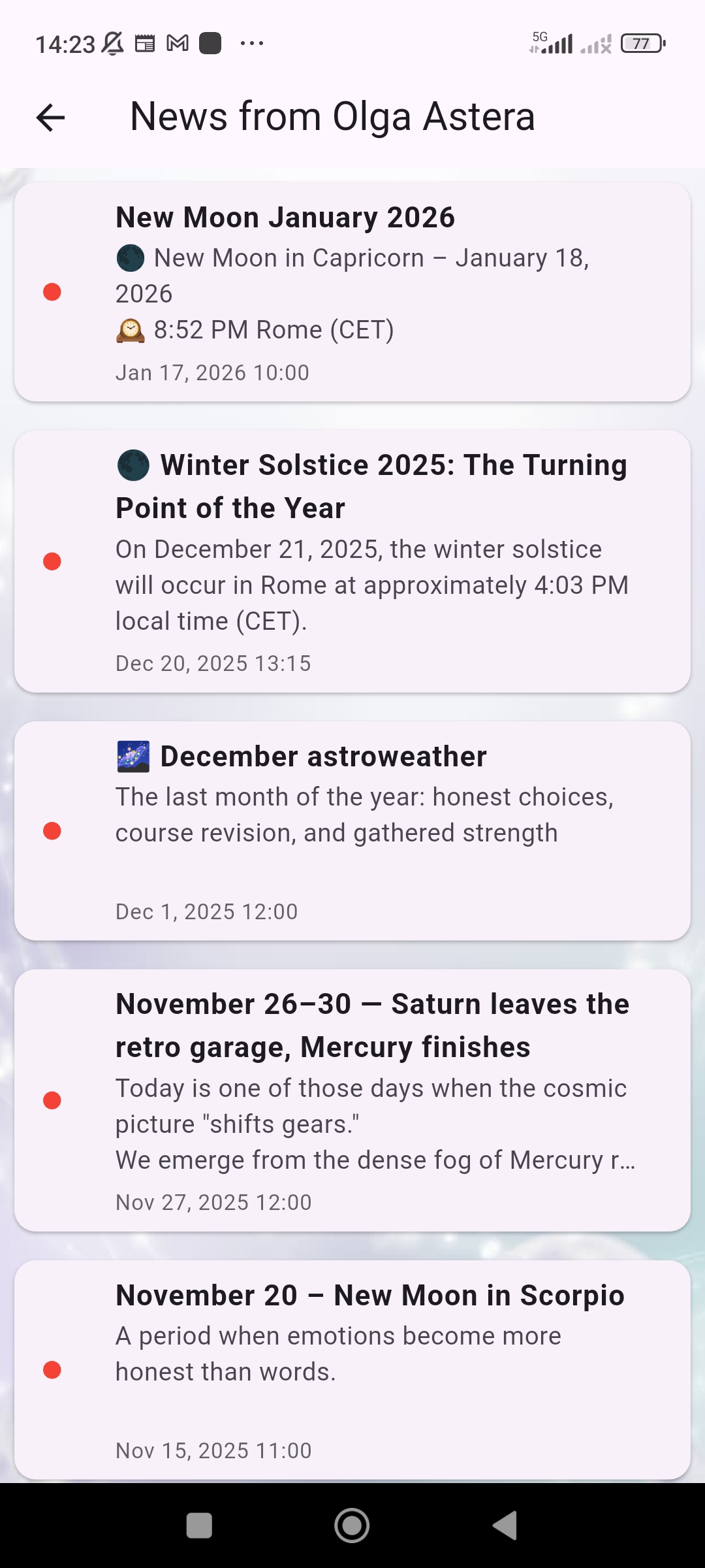 The News section inside Astera Tarot & Horoscope gives users a place for fresh astrology and tarot updates, short publications and app-connected guidance. It adds a living content layer to the wider Astera ecosystem.