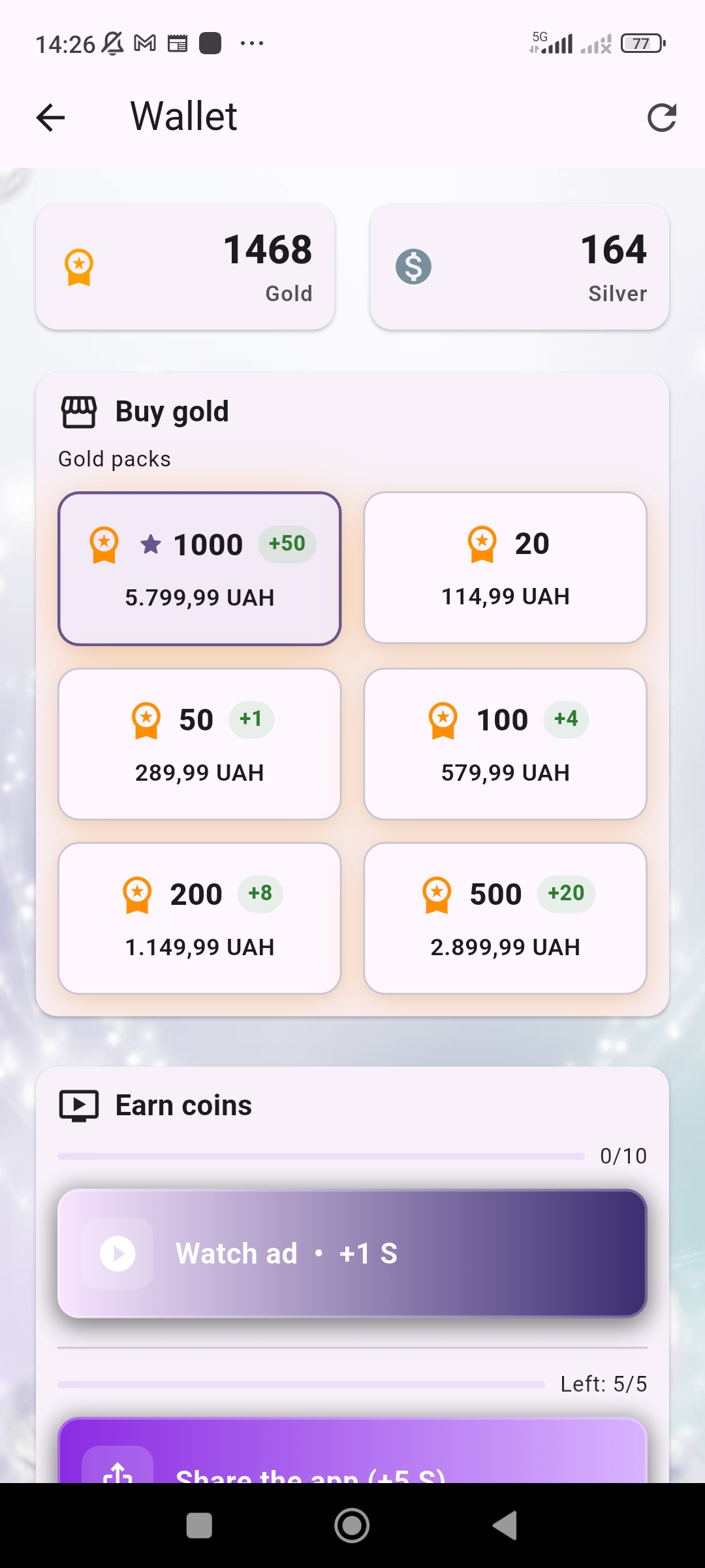 Astera Tarot & Horoscope uses a wallet-based internal system that supports both service ordering and access to some premium screens when the user does not have a premium package.
